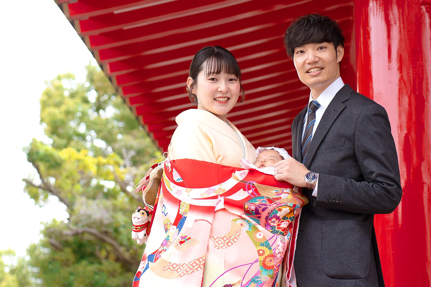 ホーム お知らせ お知らせ 新プラン「お宮参りロケーション撮影プラン」登場! 新プラン「お宮参りロケーション撮影プラン」登場!2026.4.3 カメラマン撮影に新しいプラン「お宮参りロケーション撮影プラン」が加わりました! 新プラン お宮参り三ロケーション撮影プラン 池田市呉服神社(スタジオから徒歩約15分)と提携し、スタジオでの撮影に加え、呉服神社へのお参りにもカメラマンが同行するロケーション撮影プランです。 拝殿正面のステンドグラスが特徴的で、鮮やかな赤い柱の本殿と秋の紅葉がとても美しい呉服神社。 当店では3ヶ月先までのご予約を受け付けていますので、ご検討中のお客様はぜひお気軽にお問い合わせください♪ プラン詳細はこちら