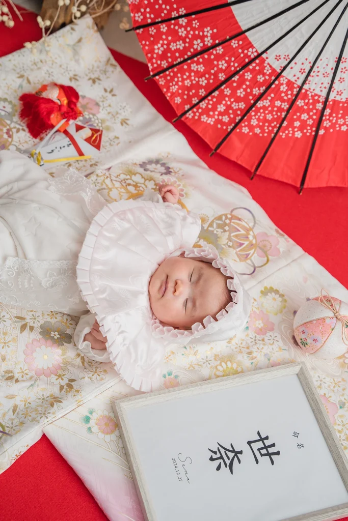 当店オリジナルデザインの命名書と一緒に撮影ができます♡