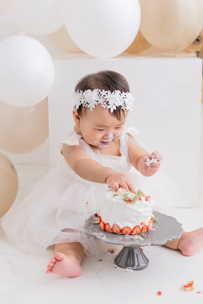 SNSを中心に話題沸騰中!1歳のお祝いに手づかみでケーキを食べる可愛い姿を収める、スマッシュケーキの撮影ができます♡